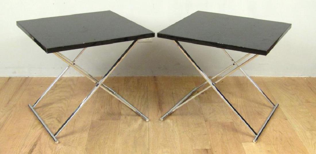 Pair Modern Chrome X" Fram Lamp Tables"