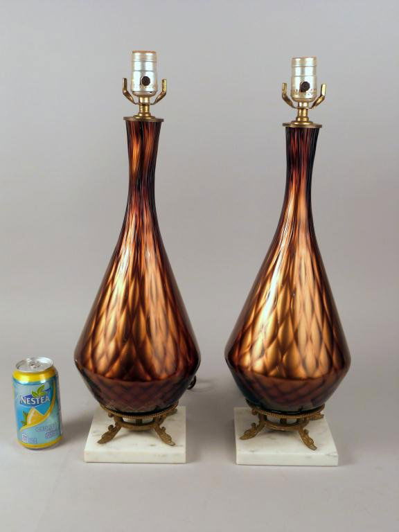 Pair Murano Brown Glass Table Lamps