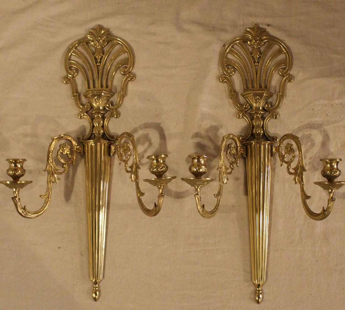 Pair Neoclassical Style Brass Candle Wall Sconces