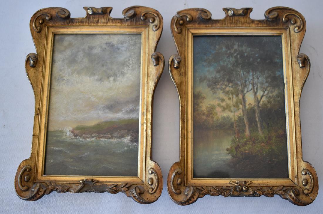 PAIR O/B SEASCAPE/WOODED STREAM SIGNED SLOAN