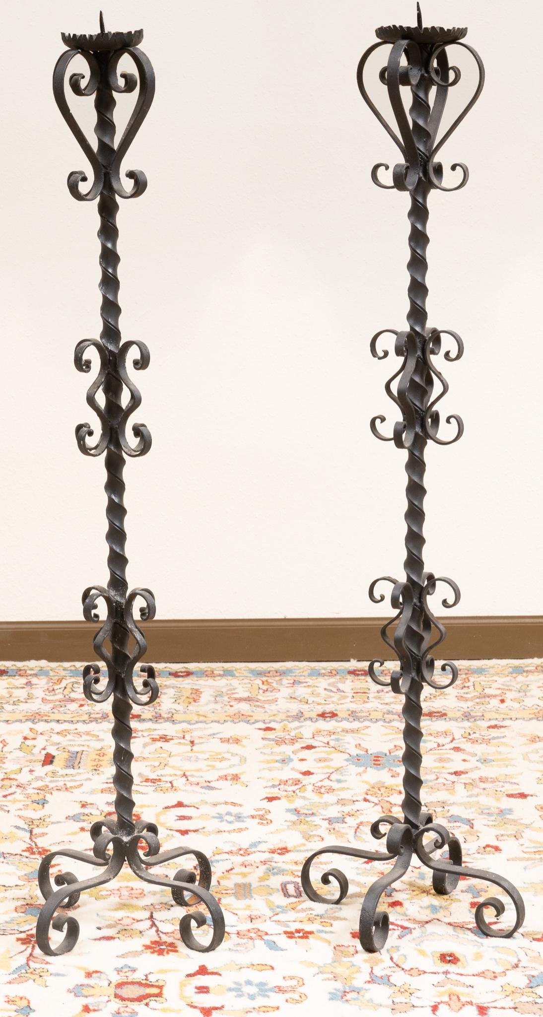 Pair of (2) Matching Iron Scrollwork Torchieres