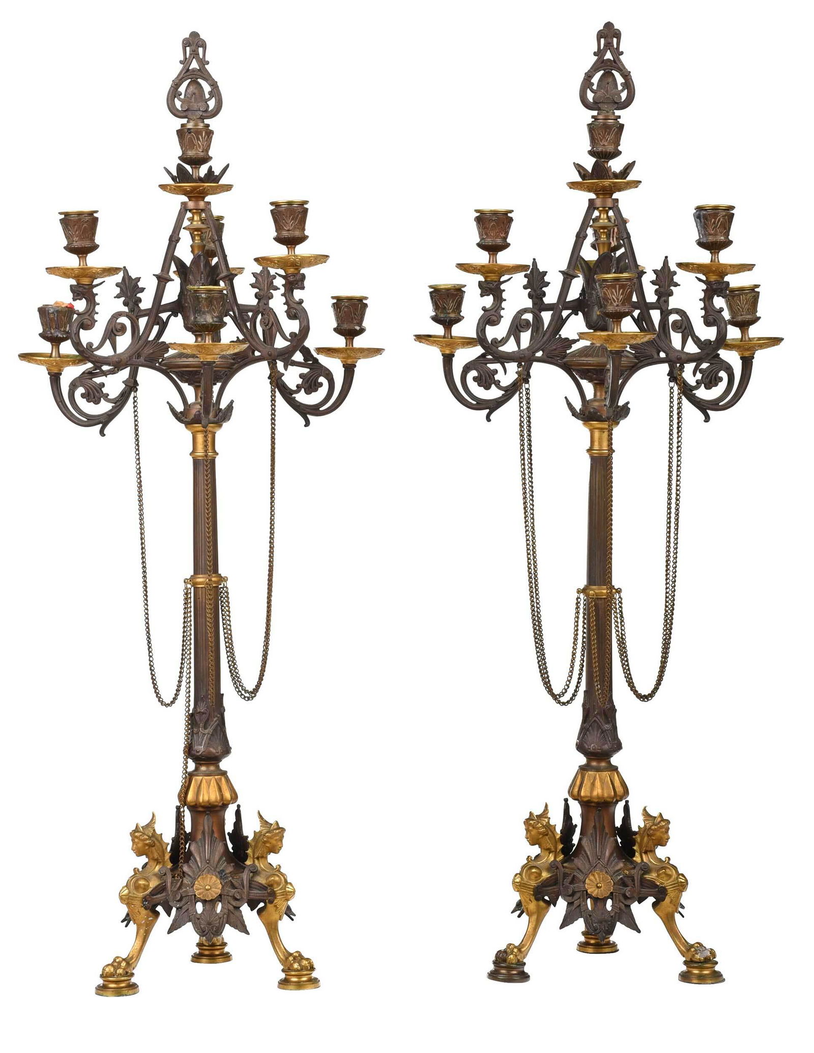 Pair of 19th Century Bronze 24-Carat Gold-Plated Six-Arm Figural CandelabrasFrench Rococo Revival Gilt Bronze Four-Light Candelabra, Pair5 days LeftPair of Napoleon III Patinated and Gilt Bronze Six Light CandelabraFeb 19, 2026Renaissance Revival Gilt Bronze Candelabra, PairApr 07, 2026(2) ITALIAN BREVETTATO LOUIS XVI STYLE GILT BRASS 5-LIGHT CANDELABRAFeb 22, 2026Pair of Louis XIV Style Eight Light Gilt Bronze and Marble CandelabraFeb 24, 2026Pair of Tall French Gilt Bronze Louis the XVI Style Candelabras, Mid to Late 19th Century5 days Left(2) FRENCH EMPIRE STYLE PATINATED & GILT BRONZE 5-LIGHT CANDELABRAFeb 22, 2026Louis XIV Fine Pair Dore Bronze Candelabras Louis XV 19th century5 days LeftA pair of impressive late 19th century French gilt and patinated bronze ten light figural cande...PAIR FRENCH EMPIRE BRONZE AND ORMOLU SEVEN-LIGHT CANDELABRAS 19th century - H: 31 1/2 in..2 days LeftFrench Brass Three-Branch Candelabra, PairMar 12, 2026Restauration Bronze Figural Candelabra Lamps, PairApr 07, 2026Elegant Pair of Mid 19th Century Bronze Candelabras in Gold FinishFeb 27, 2026Pair Of French Empire Gil & Patinated Bronze Candelabras By Thomire11 hrs Left2 French Louis XV three light gilt wall sconces.Feb 24, 2026