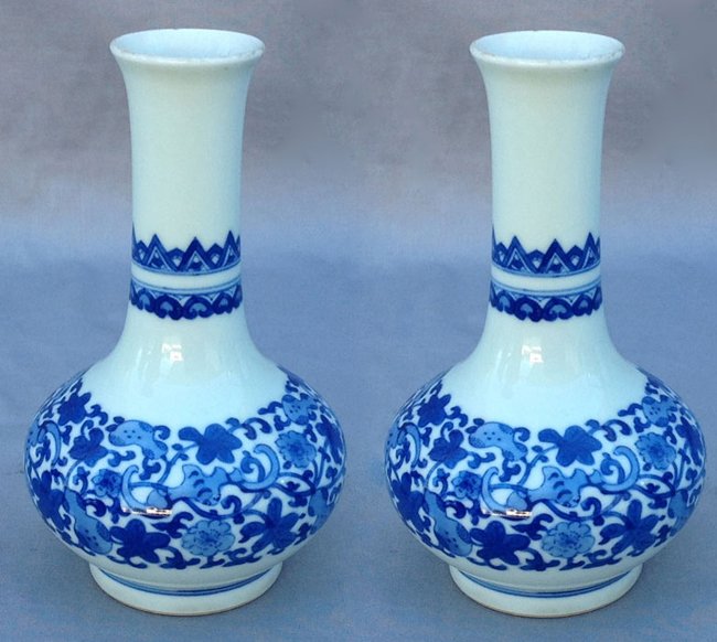 Pair of Blue White Tiny Vases