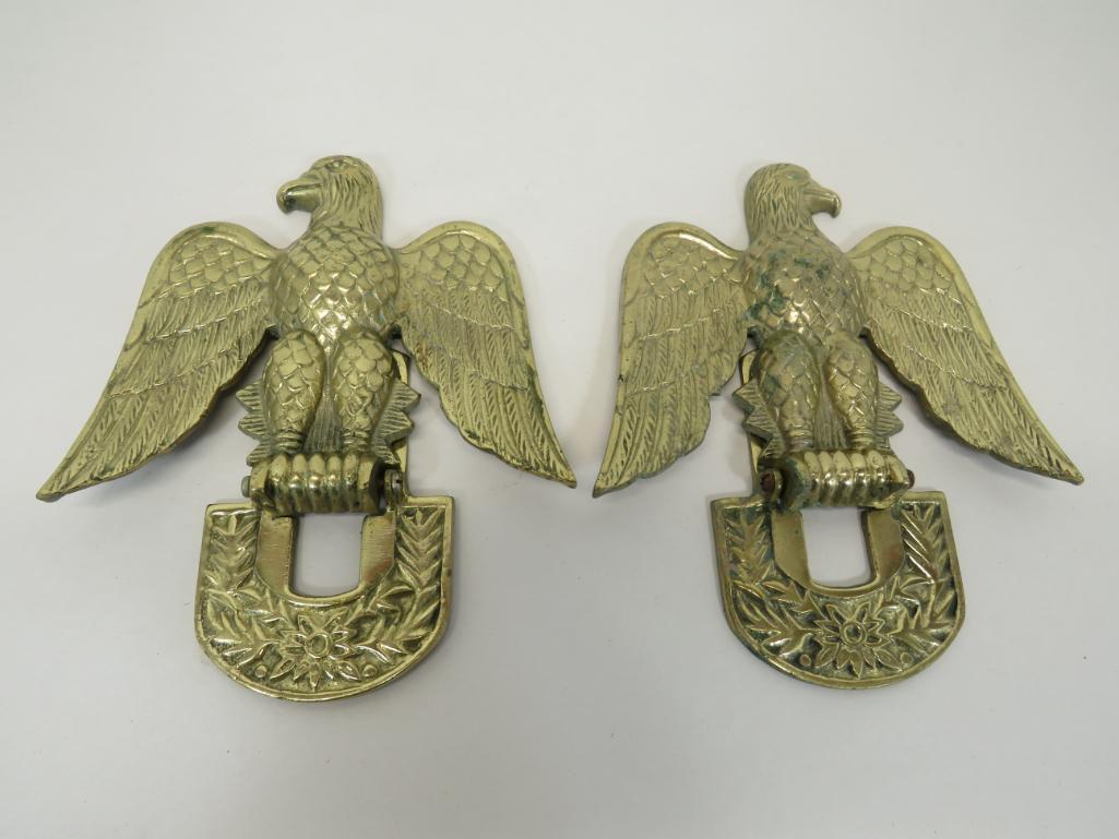 SoldPr Brass Eagle BookendsPair Brass Eagle Bookends,heavy cast brass spread winged eagles, 7 3/4" x 2 1/2" x 6 1/4". CONDITION: Very fine.See Sold Price
