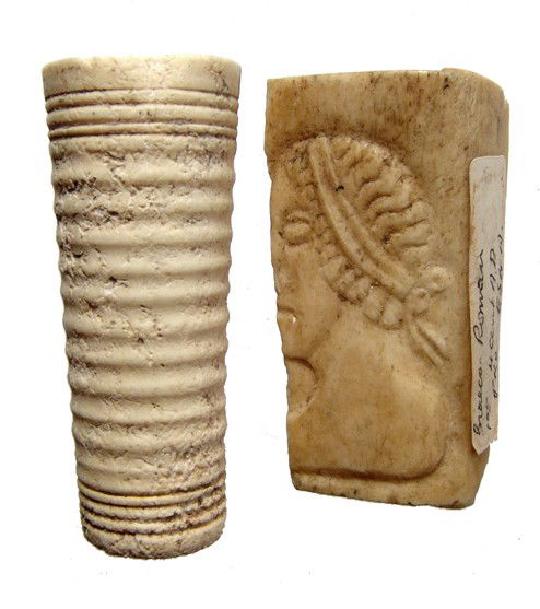 Pair of carved Coptic bone items from Egypt