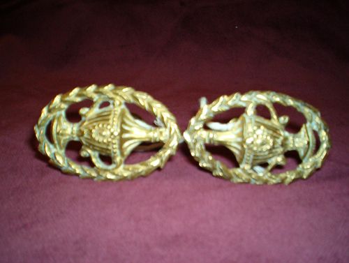 PAIR OF CAST-BRASS CLOAK PINS OR MIRROR KNOBS Eng