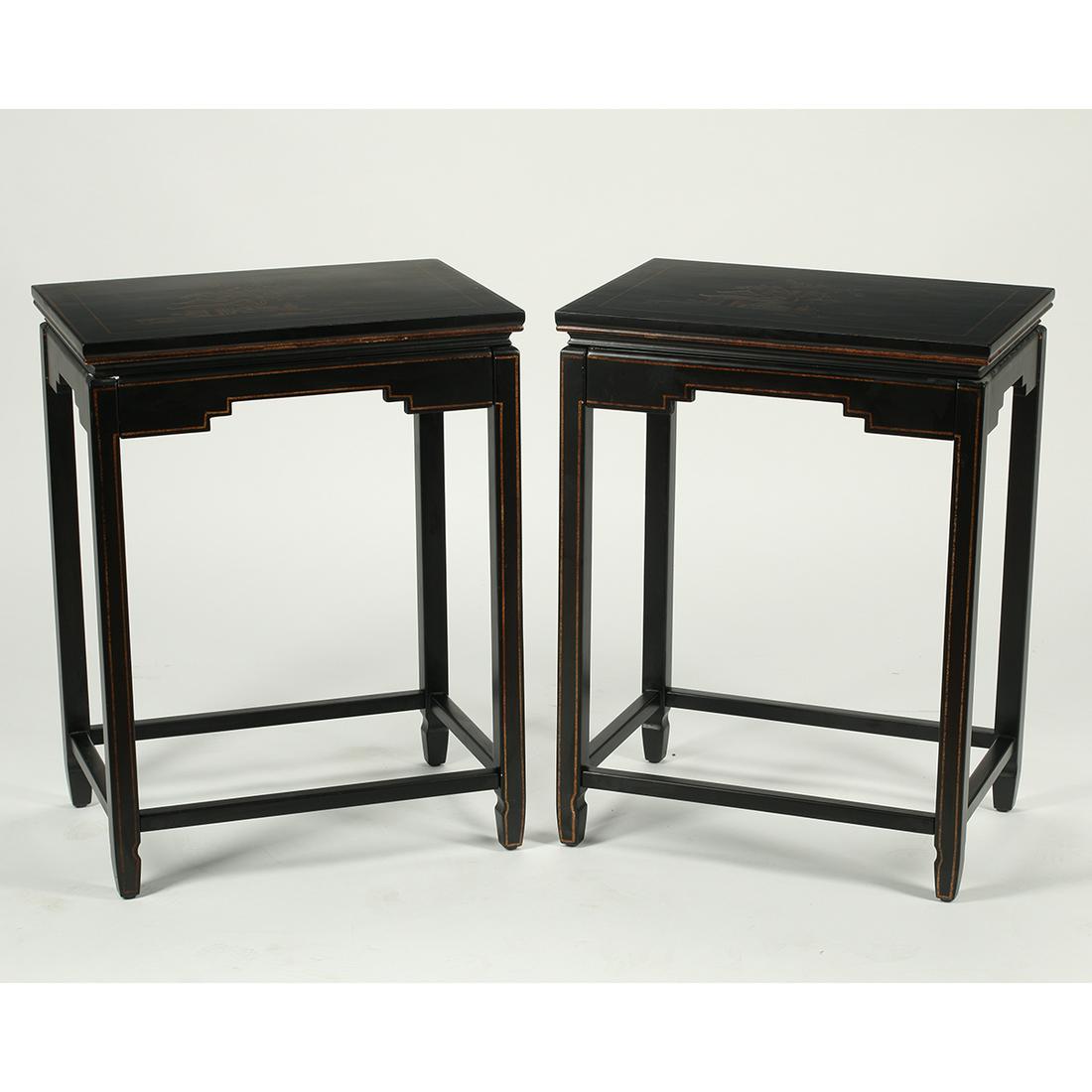 Pair of Chinese Black Lacquered Rectangular Tables.