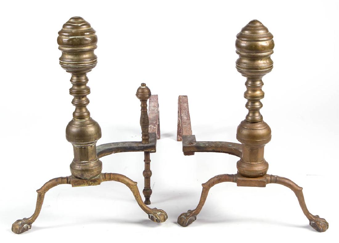 PAIR OF CLASSICAL BRASS ANDIRONS