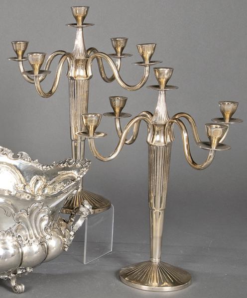 Pair of five-armed silver candlesticks