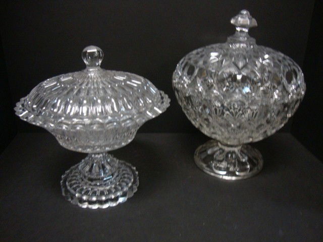Five Colorless Glass Covered Compotes