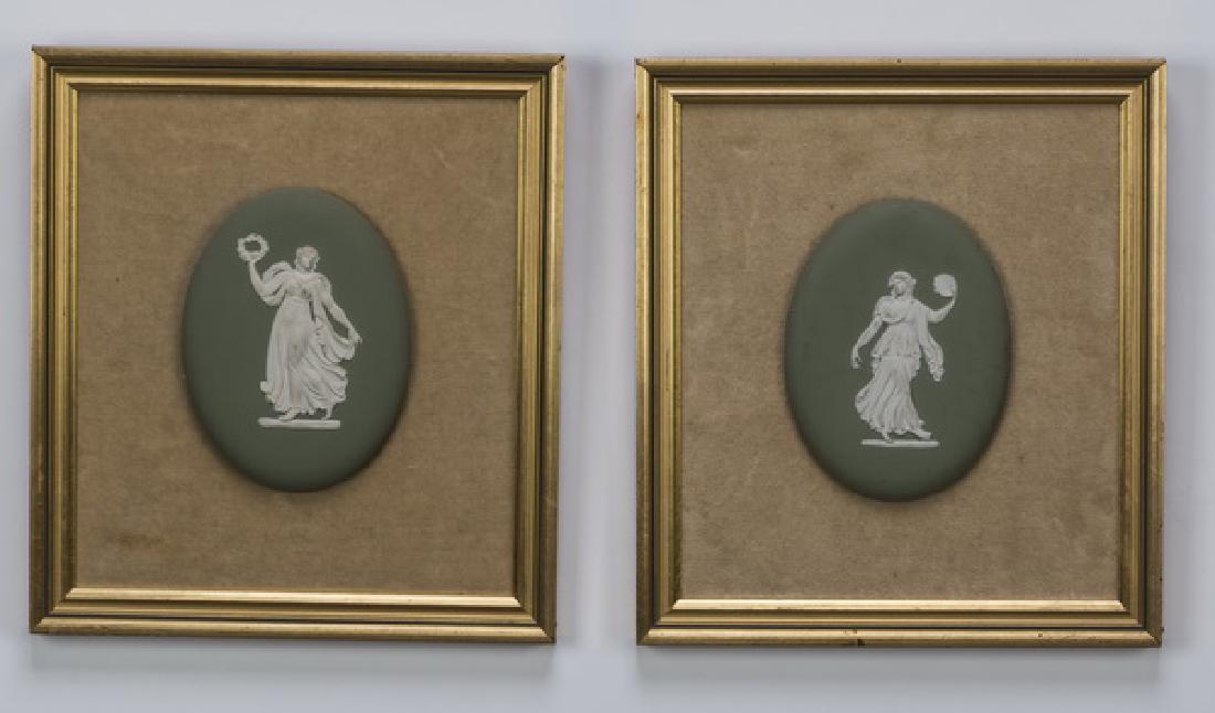 Pair of framed 'dancing hours' jasperware plaques