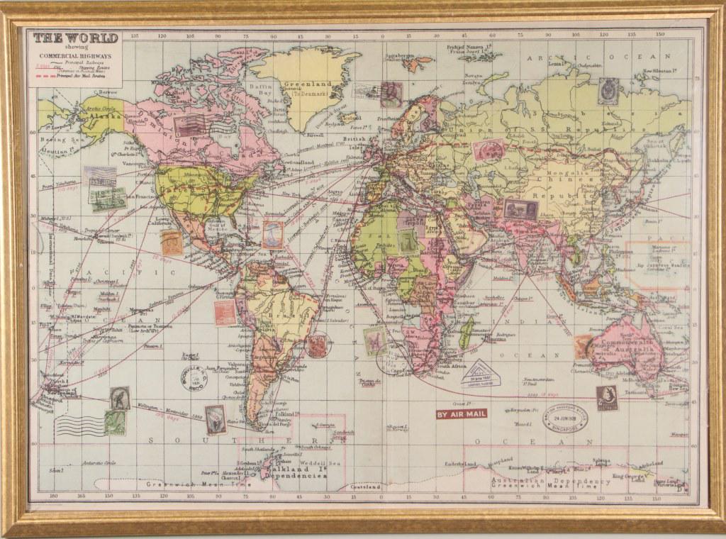 PAIR OF FRAMED WORLD MAPS