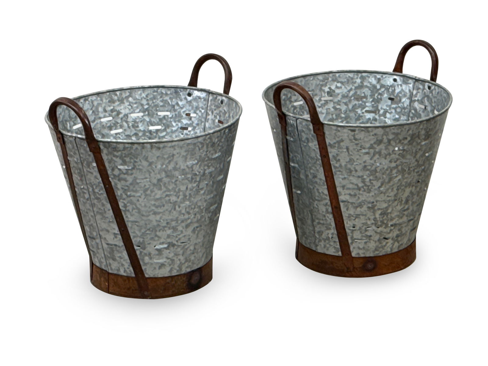 Pair of Galvanized Olive Buckets