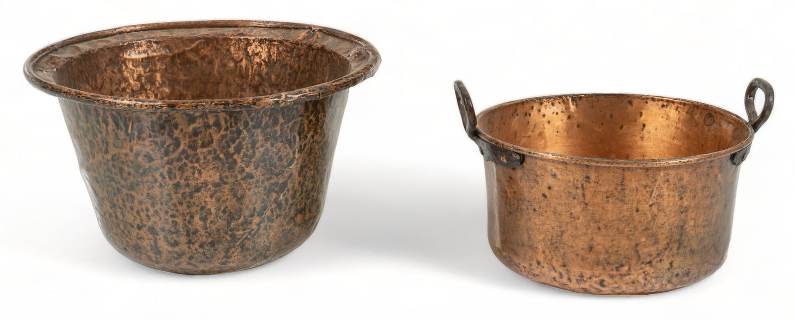 Lot Copper Items5 days LeftLot of Antique Metal ItemsMar 26, 2026ASSORTED OVERSIZED COPPER VESSELS, LOT OF TWO5 days LeftASSORTED COPPER COOKWARE / DOMESTIC ARTICLES, LOT OF SEVEN5 days LeftASSORTED FRENCH AND OTHER COPPER COOKWARE / DOMESTIC ARTICLES, LOT OF FOUR5 days LeftAMERICAN DOVETAILED COPPER APPLE BUTTER KETTLE AND PADDLE, LOT OF TWO5 days LeftEUROPEAN AND OTHER COPPER COOKWARE / DOMESTIC ARTICLES, LOT OF 115 days LeftSTAMPED "MT. CRAWFORD", SHENANDOAH VALLEY OF VIRGINIA DECORATED STONEWARE JARS, LOT OF TWO7 days LeftLOT OF TWO COPPERWARE PIECES WITH BRASS HANDLESMar 07, 2026A PAIR OF 'RED RAJA' TWIN-HANDLED BRONZE POTS, 19TH CENTURYMar 11, 2026Vintage Cast Iron "Jumbo 10" Cauldron & Dutch OvenVintage Copper 14" Candy Kettle w/Steel HandlesPair of Antique Copper Mixing Bowls with Brass Handles2 days LeftLarge hand forged copper pot. Capacity 5 quarts.6 days LeftLarge hand forged copper pot. Marked 55. Capacity 2 quarts.Mar 06, 2026Large hand forged copper pot. Capacity 3 quarts.6 days Left