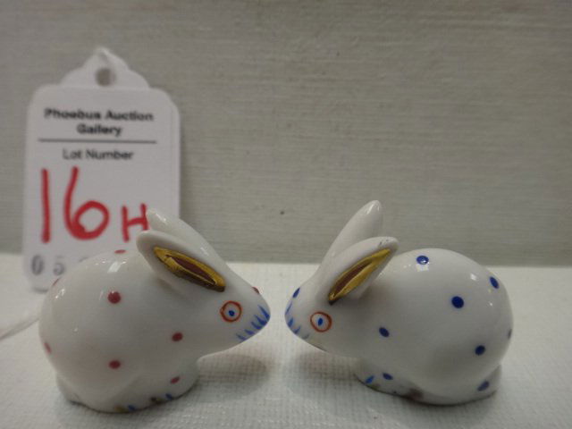 Pair of HEREND Tiny Polka Dot Bunnies: