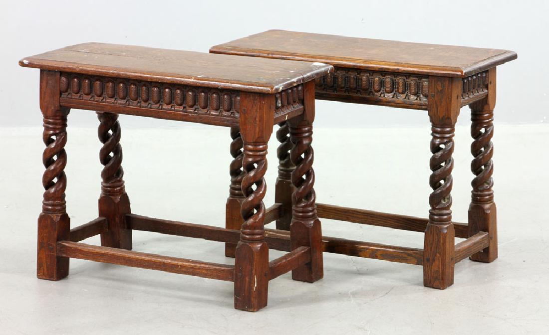 Pair of Jointed Oak Stools