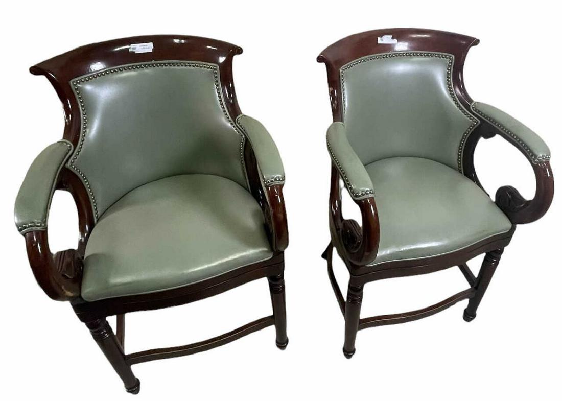 (2) REGENCE STYLE LEATHER-UPHOLSTERED CARVED WALNUT ARMCHAIRSFeb 22, 2026Elegant Pair of Councill Craftsmen Mahogany Leather ArmchairsMar 04, 2026Set of 4 Theodore Alexander French Style Leather Armchairs13 hrs LeftExquisite Pair of Solid Walnut Side Chairs with Black Leather Seats4 days LeftPair of Leather Upholstered Tub Chairs7 days LeftLeather Wingback Chairs - PairFeb 26, 2026PAIR TURNED WOOD AND LEATHER SAFARI CHAIRS WITH CONFORMING BACKS C 1960.Feb 24, 2026Pair of George III Style Mahogany and Leather Side Chairs, Stamped16 hrs LeftPair of Leather Upholstered Swivel Office ChairsFeb 21, 2026PAIR OF WOOD AND LEATHER OPEN ARM CHAIRS C 1940.Feb 25, 2026Vintage Flemish Baroque Pair of Leather Side ChairsMar 01, 2026Century Bamboo Island Design High Back Armchairs Leather Nickel Finish607 Lots AwayCentury Bamboo Island Design High Back Armchairs Leather Nickel Finish6 days LeftSet of 4 Theodore Alexander Leather Mahogany Armchairs with Tack TrimMar 03, 2026Six Neoclassical Leather Armchairs with Lion Head Detail for Game Table Set of 66 days LeftChippendale Style Mahogany Leather Armchairs PairMar 03, 2026