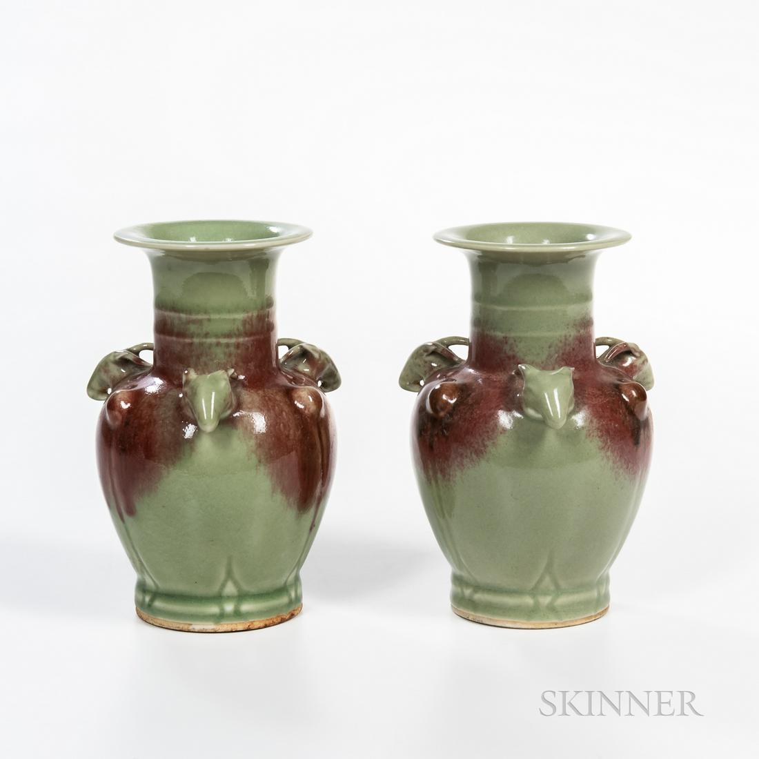 Pair of Purple-splashed Celadon Vases