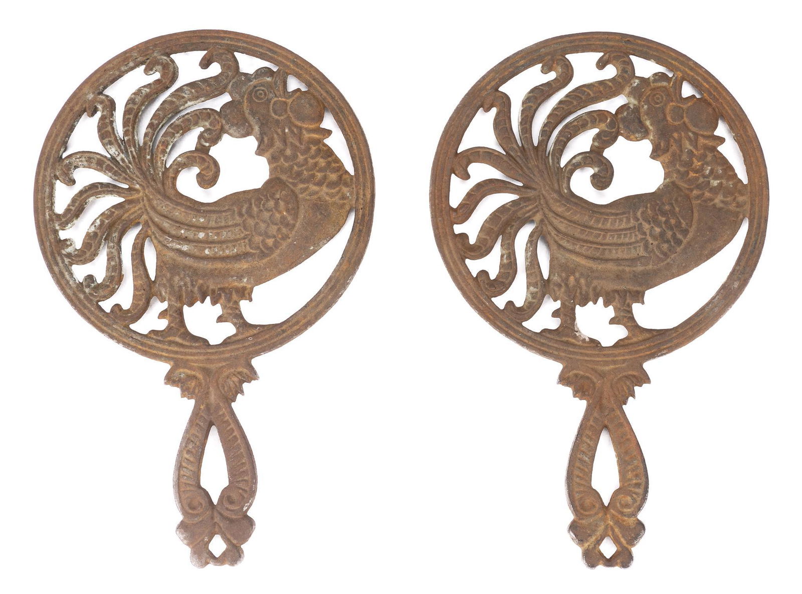 LOT OF TWO BRASS ROOSTER FIGHTING SCULPTURES5 days LeftASSORTED WROUGHT-IRON HEARTH WAFER IRONS, LOT OF TWOMar 06, 2026WROUGHT-IRON FIGURAL ORNAMENTAL HANGING / BETTY LAMP HOOKS, LOT OF TWOMar 06, 2026VIRGINA METALCRAFTERS / WILLIAMSBURG RESTORATION METALCRAFTERS CAST BRASS SINGLE-ARM CANDLE WALLMar 06, 2026Cast Iron Rooster Door Mat & Complementary Cast Iron BasketMar 08, 2026Pair of Cast Iron Wall Brackets22 hrs LeftPair German rustic style brass game bird wall sconces3 days LeftPaul Comolera French Style Antique Hunt PlaquesMar 11, 2026Pair of Tin Hanging Screens with Inlaid Gems, Poetic Prose and Floral PatternsMar 08, 2026Architectural Carved Walnut Wall Hanger Game Rabbit and Pheasant (2)Mar 28, 2026Pair of French Bronze Trophy Game Bird Wall Mounts2 days LeftJan Barboglio Bronze Finish Wrought Iron Fireplace Andirons with Flower Design6 days LeftArchitectural Carved Walnut Wall Hanger Game Rabbit Head and Pheasant (3)Mar 28, 2026Silver-plated Bronze Incense Burner with a Reverting Auspicious Beast3 days LeftPalace-Style Fan with Gilt Silver "Dragon and Phoenix Presenting Auspiciousness" on Both Sides4 days LeftEuropean Silvered Metal Fighting Roosters, PairMay 07, 2026
