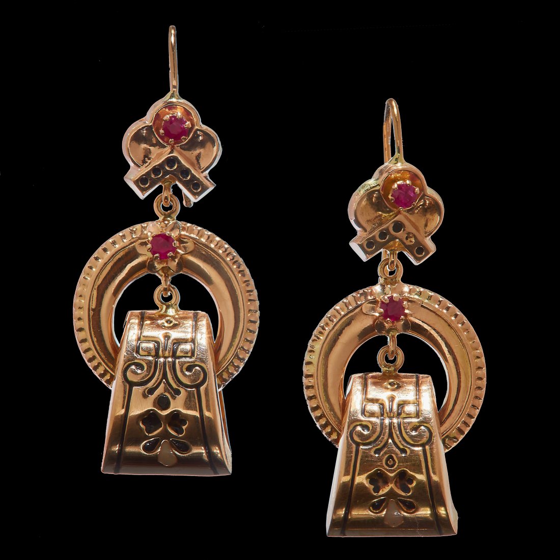 PAIR OF RUBY AND ENAMEL DROP EARRINGS