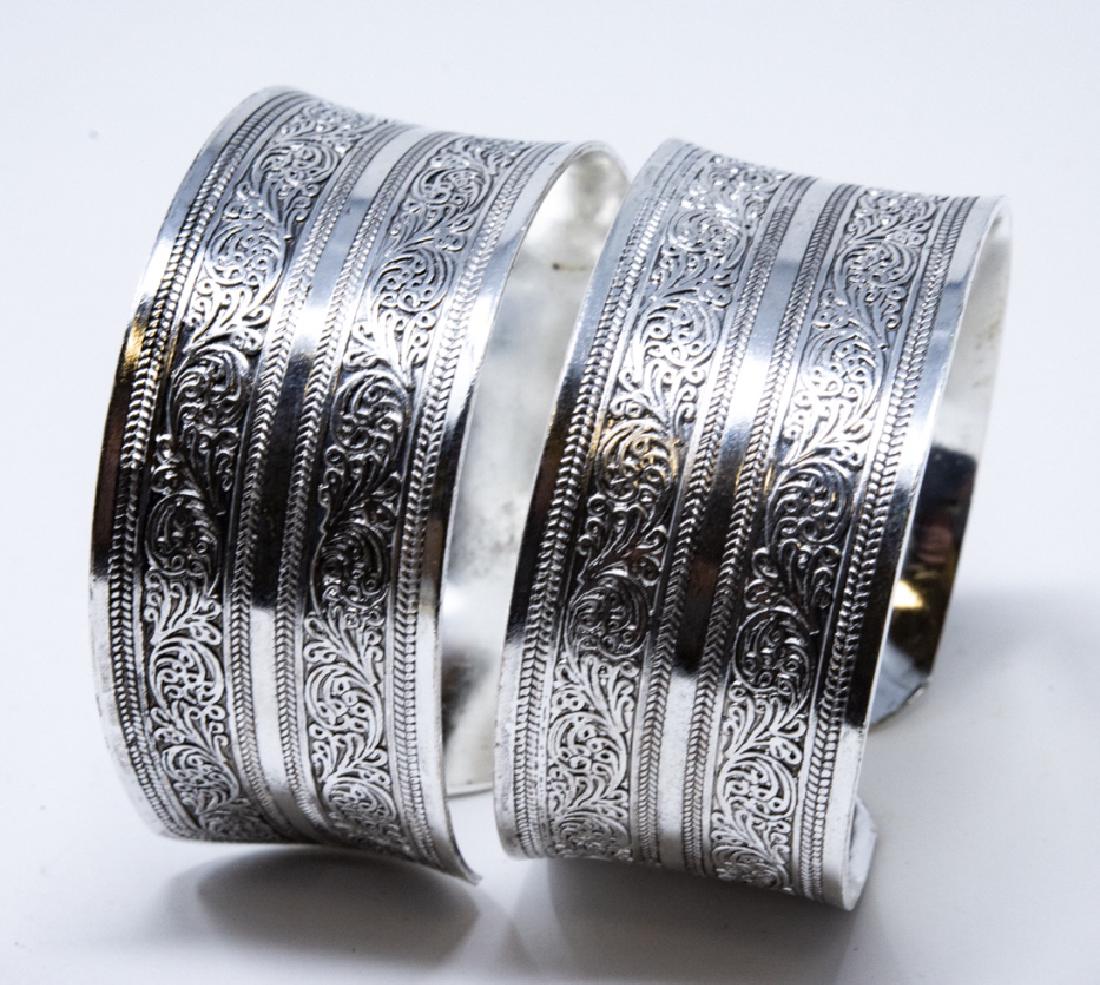 Pair of Scrollwork Motif Silver Cuff Bracelets