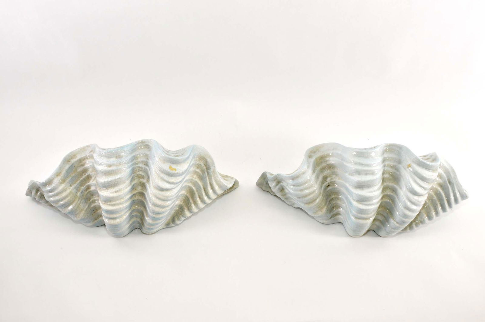 PAIR OF SHELL-FORM MOLDED PLASTER WALL POCKETS