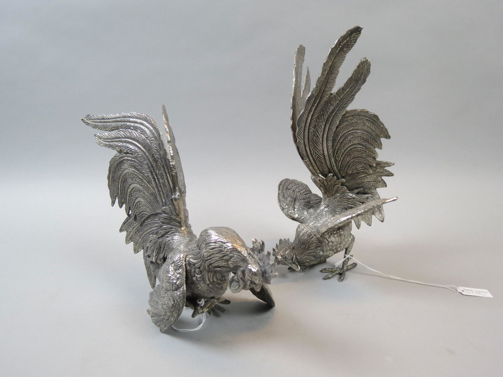 Pair of Silverplate Fighting Cocks,