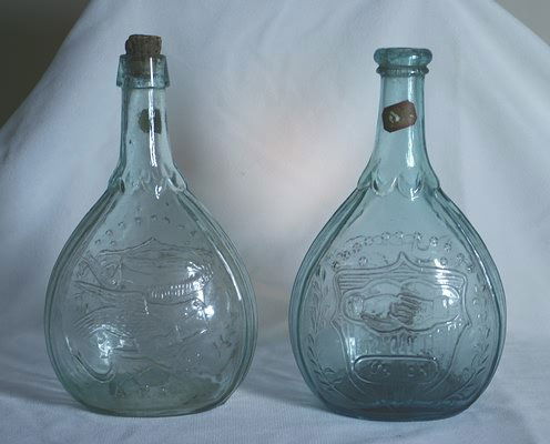 Pair of Union Clasped Hands and Eagle Flasks.