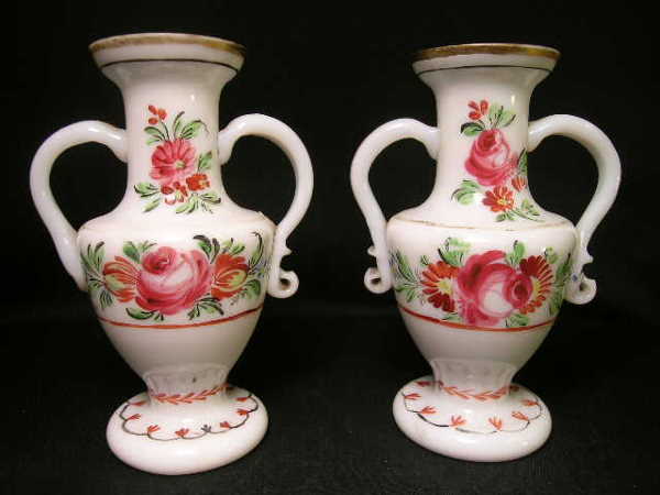 PAIR OLD PARIS STYLE MINI VASES HAND PAINTED