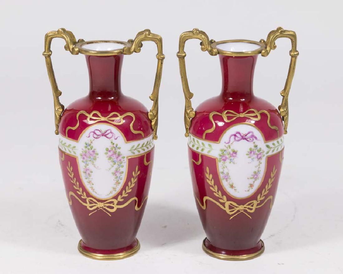 Pair Opaline Handpainted Vases