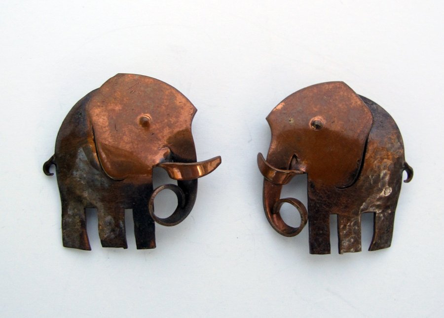Pair opposing Rabajes Elephant Pins