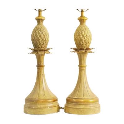 SoldPAIR ORIENT EXPRESS PINEAPPLE LAMPSPair of Vintage Orient Express Pineapple Table Lamps. Lamps 20.50" to top of Finale 28.50". Weight 21 pds. PROVENANCE: A Charleston SC Private Estate.See Sold Price
