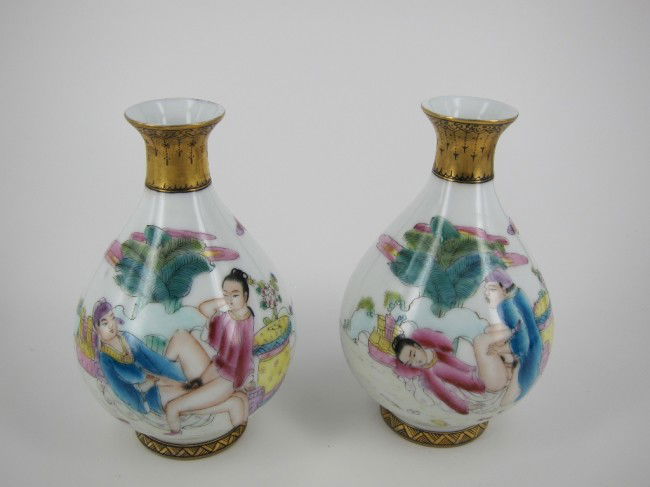 PAIR ORIENTAL PORCELAIN EROTIC VASES