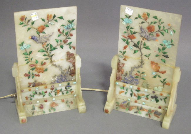 PAIR ORIENTAL STONE LUMINARY TABLE PLAQUES