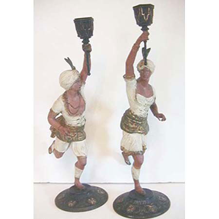 Pair Orientalist figural candelabras