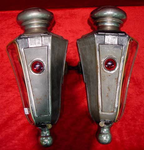 PAIR ORIGINAL BRASS SILVER GILDED COACH LIGHTS WIT