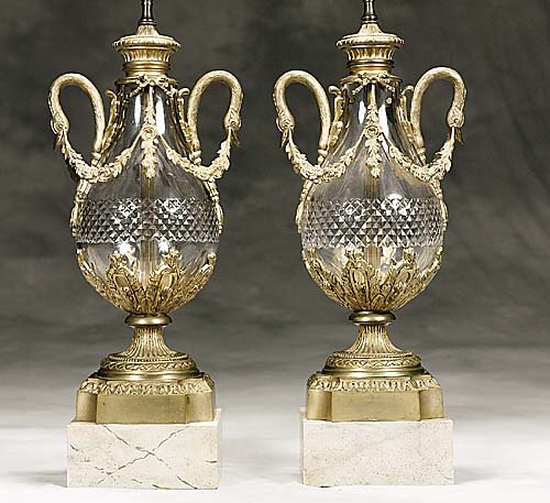 Pair of Chinese Famille Verte Jars Mounted As Lamps12 hrs LeftAntique French Gilt Bronze Diamond Cut Baccarat Crystal Urns Signed - PairPair of Hollywood Regency Style Fine Glass Lamps with Swan HandlesPair of Impressive Cut Glass Vases with Bronze Seahorse HandlesMar 07, 202619th Century Ormolu Mounted Sevres Cobalt Urns Converted to Lamps Set of 24 days LeftPR OF CUT CRYSTAL FRENCH EMPIRE STYLE URN LAMPS 49" X 9" OVERALLMar 15, 2026French White Marble & Gilt Metal Table Lamps, PairMar 19, 2026Set of 2 Venetian Style Urn Mirror Lamps Floral Engraved Italy 20th Century5 days LeftFrench Ormolu Mounted Rouge Griotte Urns, PairMar 19, 2026Pr French Garniture VasesMar 14, 2026Pair Ruby to Clear Gilt Glass Table LampsMar 18, 2026Pair of Vintage Brass and Marble Three-Light Candelabra Lamps with Crystal Prisms13 hrs LeftA Pair Of Large 19th century French Ormolu Mounted Obsidian Urns2 days LeftGilt Brass and Cut Crystal Table Lamps, PairMar 05, 2026Pair Of Large Brass Mounted Capodimonte Table Lamps3 days LeftPair of Paris Porcelain Gilt and Figural VasesMar 07, 2026