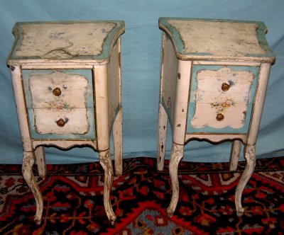 SoldLARGE PAIR PAINTED FRENCH STYLE NIGHT STANDS 1960A large pair of painted French style night stands circa 1960. Marked Cellini. Ht: 26.25" Wd: 26.25" Dpth: 16.25"See Sold Price