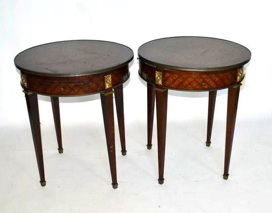 Y A PAIR OF REGENCY MAHOGANY AND KINGWOOD TEA TABLES, CIRCA 1815Feb 18, 2026A PAIR OF FRENCH TULIPWOOD AND MARQUETRY OCCASIONAL TABLES 20TH CENTURYFeb 18, 2026Pair of Louis XVI Style Marble Top Parquetry Side Tables5 days LeftSet of two French walnut inlay end tables model 5006-028Feb 16, 2026Two Inlaid Music Box Tables19 hrs LeftPAIR OF FRENCH LOUIS XVI STYLE INLAID MARBLE TOP NIGHT STANDS, CIRCA 1900Feb 15, 2026PR. CHINESE MAHOGANY LOW TABLES, 16" X 18"Feb 21, 2026Pair of French Directoire Style Bronze Tables with Pietra Dura Marble TopFeb 15, 2026Federal Mahogany Pembroke Demilune TableFeb 21, 2026PAIR OF ENGLISH CAMPAIGN STYLE END TABLES4 days LeftPair of Dark Stained Wood Demilune Side TablesFeb 18, 2026Pair Donghia style side tablesFeb 18, 2026(2) FRENCH LOUIS XV STYLE MATCHED VENEER MARQUETRY NIGHTSTANDSFeb 21, 2026Two Louis XVI Marble Top Mahogany Bouillotte TablesFeb 18, 2026ENGLISH MAHOGANY INLAID CENTER HALL TABLEFeb 19, 2026Councill Craftsmen Inlaid Mahogany Pembroke Tables with Brass PullsFeb 17, 2026