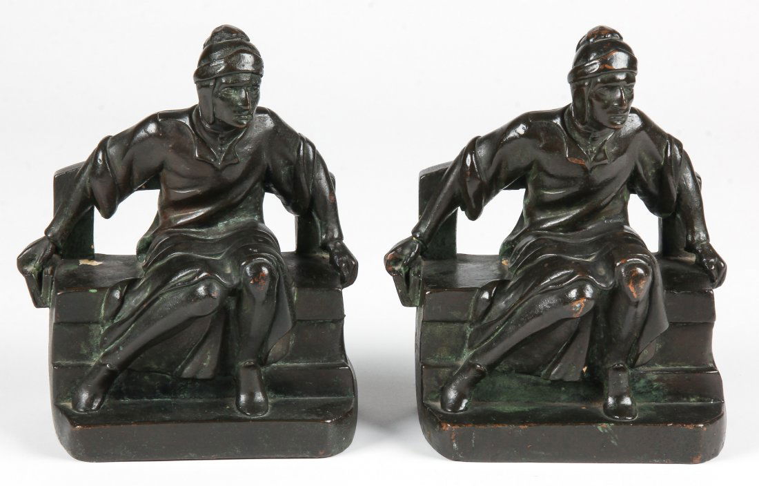 Pair Patinated Figural Florentine Scholar Bookends