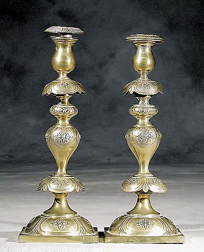 Pair Polish brass Sabbath candlesticks late 19th ce
