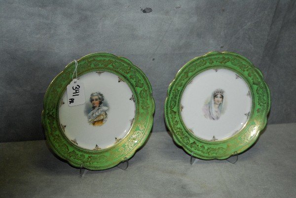 SoldPair German porcelain portrait plates, lady with feathered hat, necklaces & fancy dress, diameter isPair German porcelain portrait plates, lady with feathered hat, necklaces & fancy dress, diameter is 10", additional info on back, see images, no cracks, damageSee Sold Price