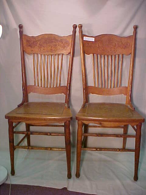PAIR PRESSED BACK OAK CHAIRS Cane seats