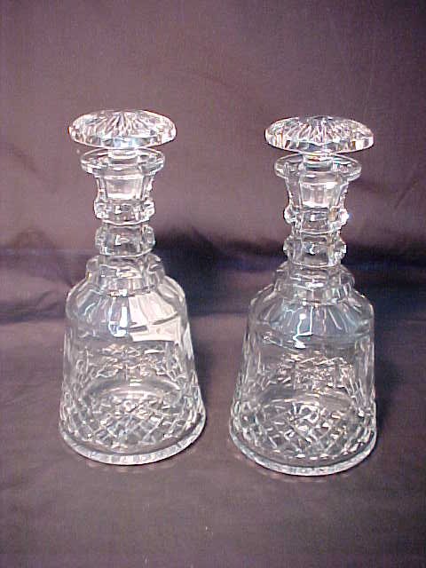 PAIR PRESSED GLASS DECANTERS Measures 10