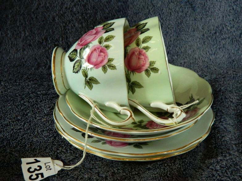 Pair Queen Anne bone china trios