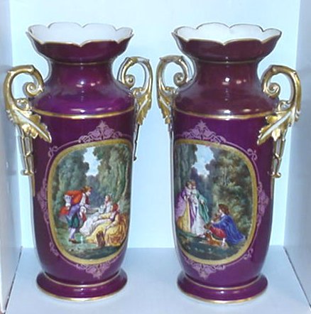 Antique Pair of Old Paris Sevres Style VasesAntique Old Paris Porcelain Pair of Vases Late 19th Century, the vases hand-painted with playful scenes of hide and seek, beautifully gilded throughout h. 16 1/2" Condition:Excellent, no chips or cracSee Sold Price