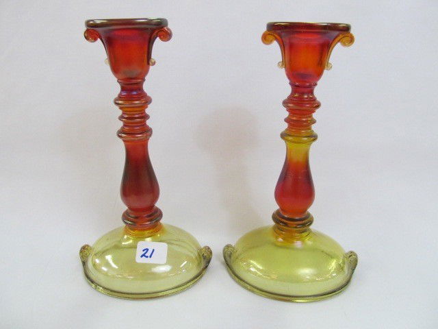Pair Red Double Scroll candlestick holders