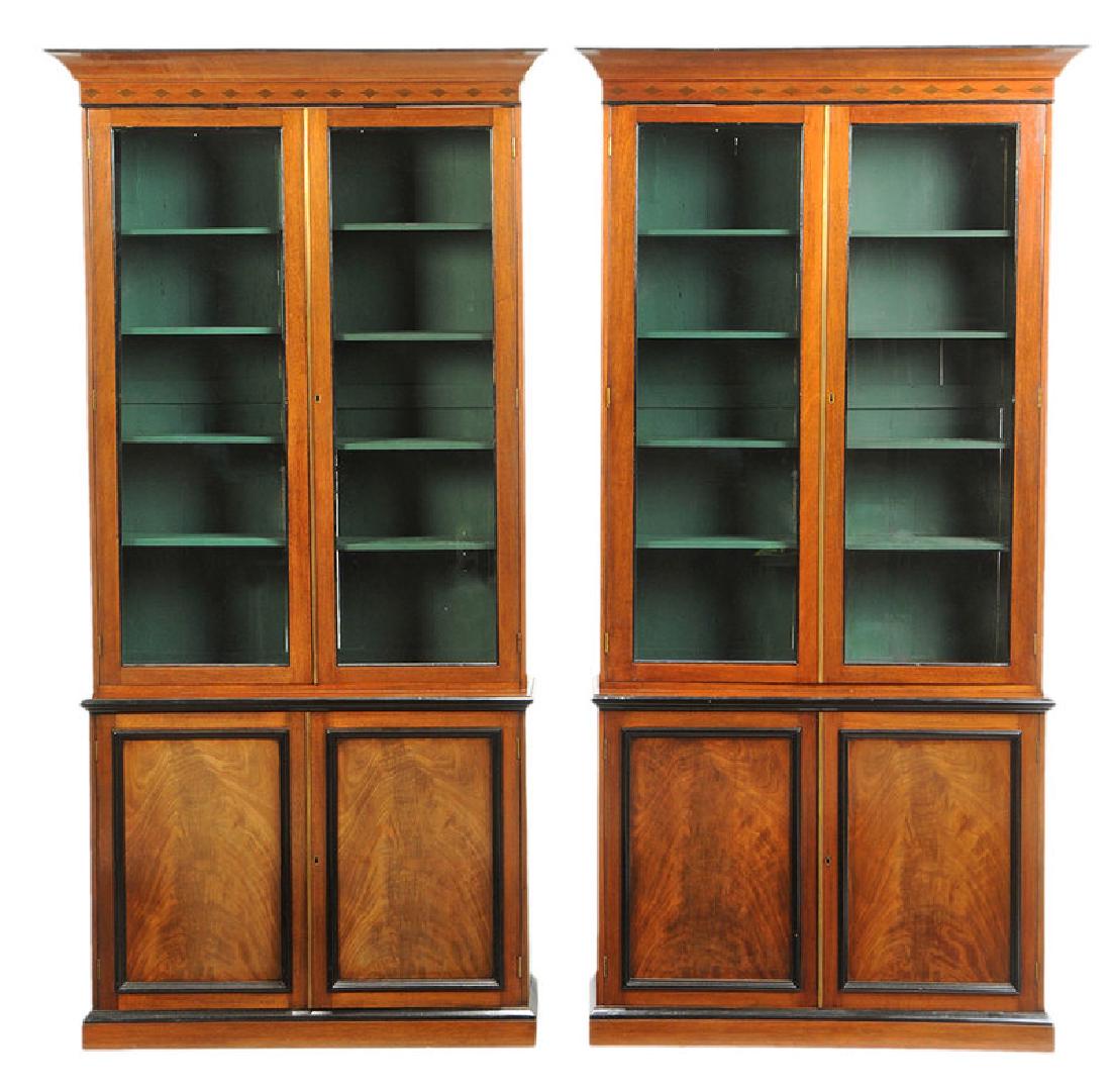 Pair Regency Style Inlaid Bookcase Cabinets
