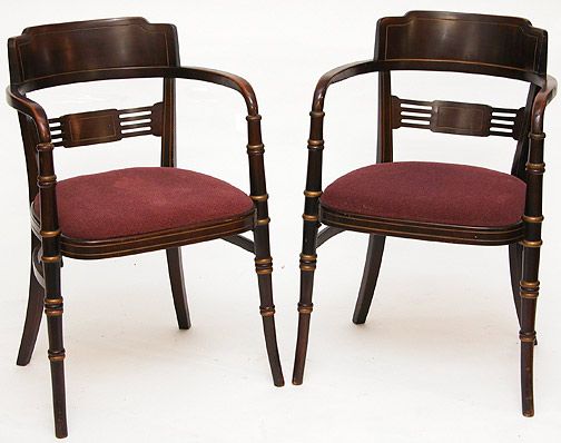 Pair Regency Style Walnut Arm Chairs Circa 1920's