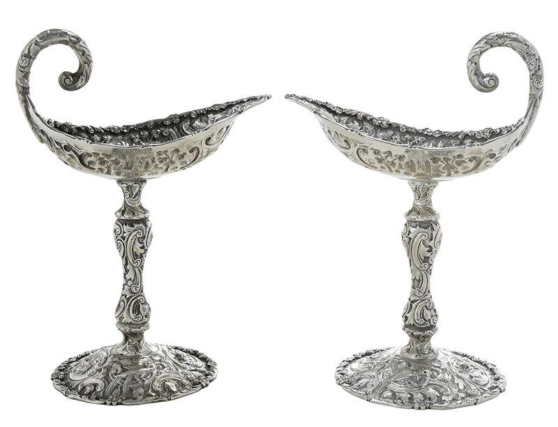 Pair Repousse Sterling Compotes